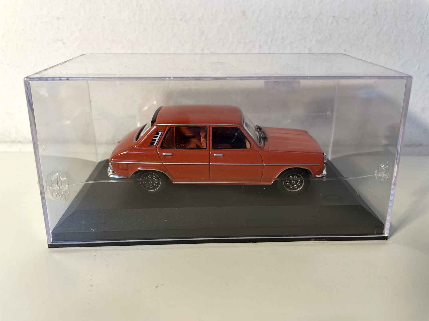La couleur rouge orangée de cette miniature évoque également une époque particulière : celle des années 1970 psychédéliques où les constructeurs osent des teintes audacieuses. Cette couleur, baptisée "Rouge Grenade" dans le catalogue Simca, devient rapidement l'une des livrées les plus demandées, reflétant l'optimisme et la créativité de cette décennie.