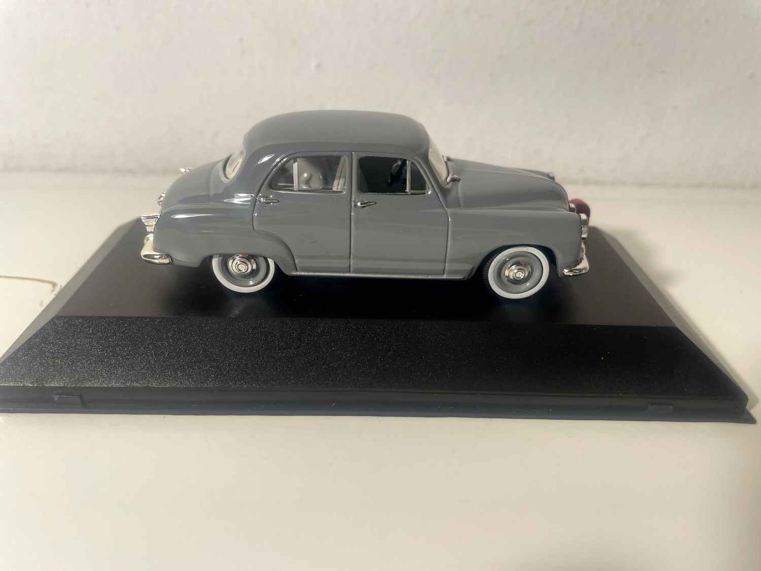 La Simca Aronde de 1952 revit dans cette magnifique reproduction fidèle aux moindres détails de l'originale. Cette miniature capture parfaitement l'élégance intemporelle de ce modèle emblématique des années 1950, avec sa teinte grise caractéristique qui souligne les lignes pures de cette berline française d'exception.