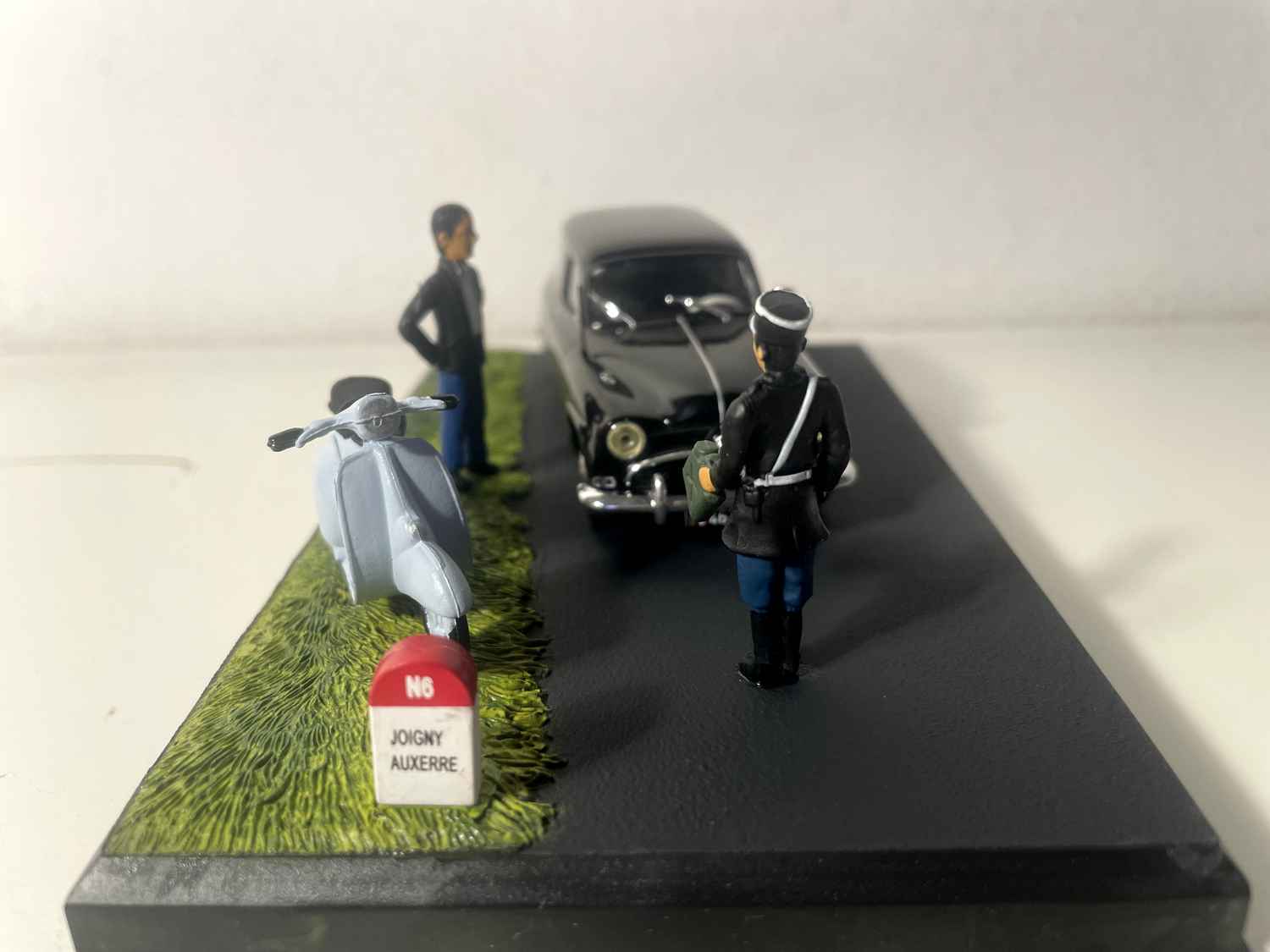 La couleur noire de cette miniature évoque d'ailleurs les versions les plus élégantes de l'époque, souvent choisies par les professionnels ou les familles soucieuses de distinction. Sur la Nationale 7, ces Aronde noires se démarquaient de la masse des véhicules aux teintes plus communes, affichant une certaine réussite sociale de leurs propriétaires. Elles incarnaient cette France en mouvement, entre tradition et modernité, entre province et littoral méditerranéen.
