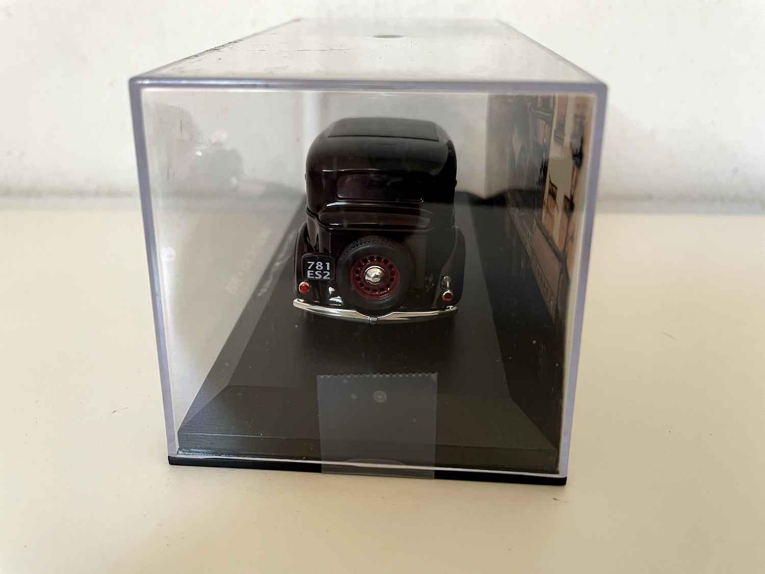 Découvrez cette superbe miniature de la Simca-Fiat 6CV noire de 1935, une reproduction fidèle qui immortalise l'une des voitures les plus emblématiques de l'entre-deux-guerres français. Cette pièce d'exception capture parfaitement l'esprit d'une époque où l'automobile française connaissait ses premières heures de gloire populaire.