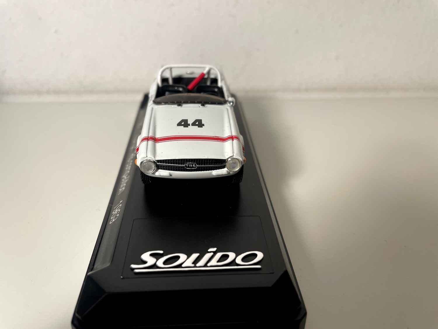 La version compétition, comme celle reproduite par Solido, évoque les exploits sportifs du modèle lors des rallyes européens et des courses d'endurance. Le numéro 44 rappelle ces heures de gloire où les TR6 privées se mesuraient aux machines d'usine sur les circuits les plus prestigieux, démontrant les qualités intrinsèques du châssis et de la mécanique Triumph.
