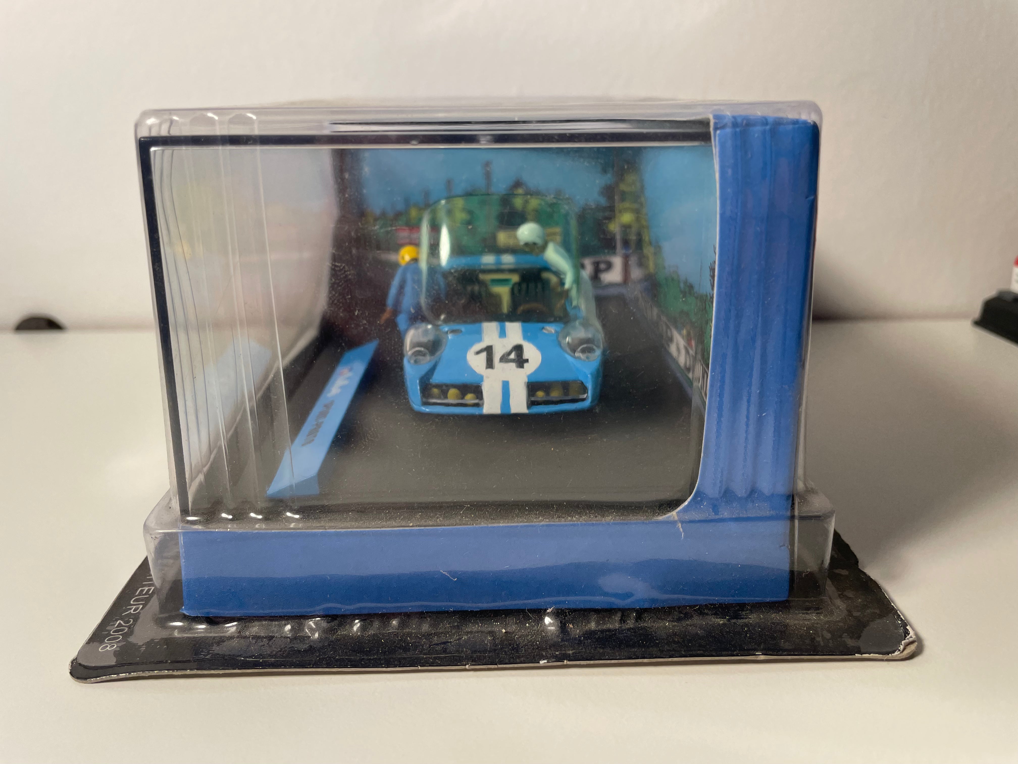 Voiture Miniature Voiture bleue et blanche numéro 14 Vaillante Sport-Proto (Album Concerto pour pilotes) - Bande Dessinée Michel Vaillant