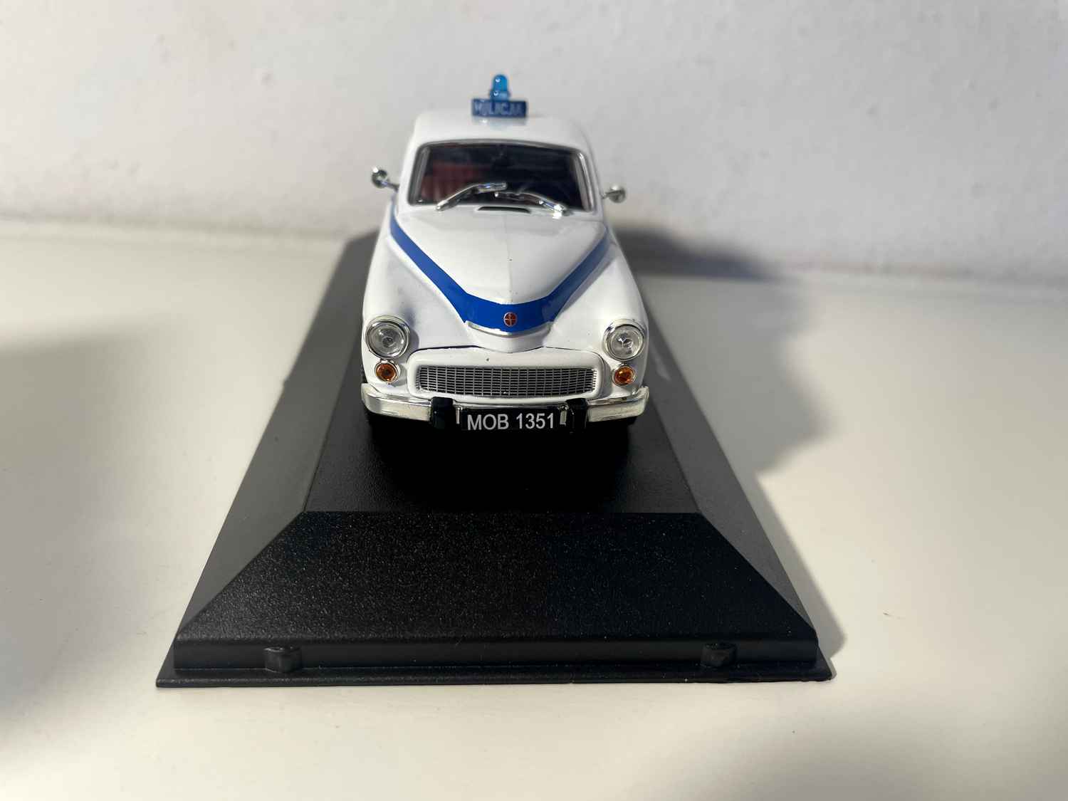 Cette Warszawa 223 de police polonaise représente un témoin privilégié de l'histoire automobile de l'Europe de l'Est. Cette miniature au 1/43ème capture fidèlement l'essence d'un véhicule qui a marqué les rues polonaises pendant des décennies, arborant fièrement sa livrée caractéristique des forces de l'ordre.