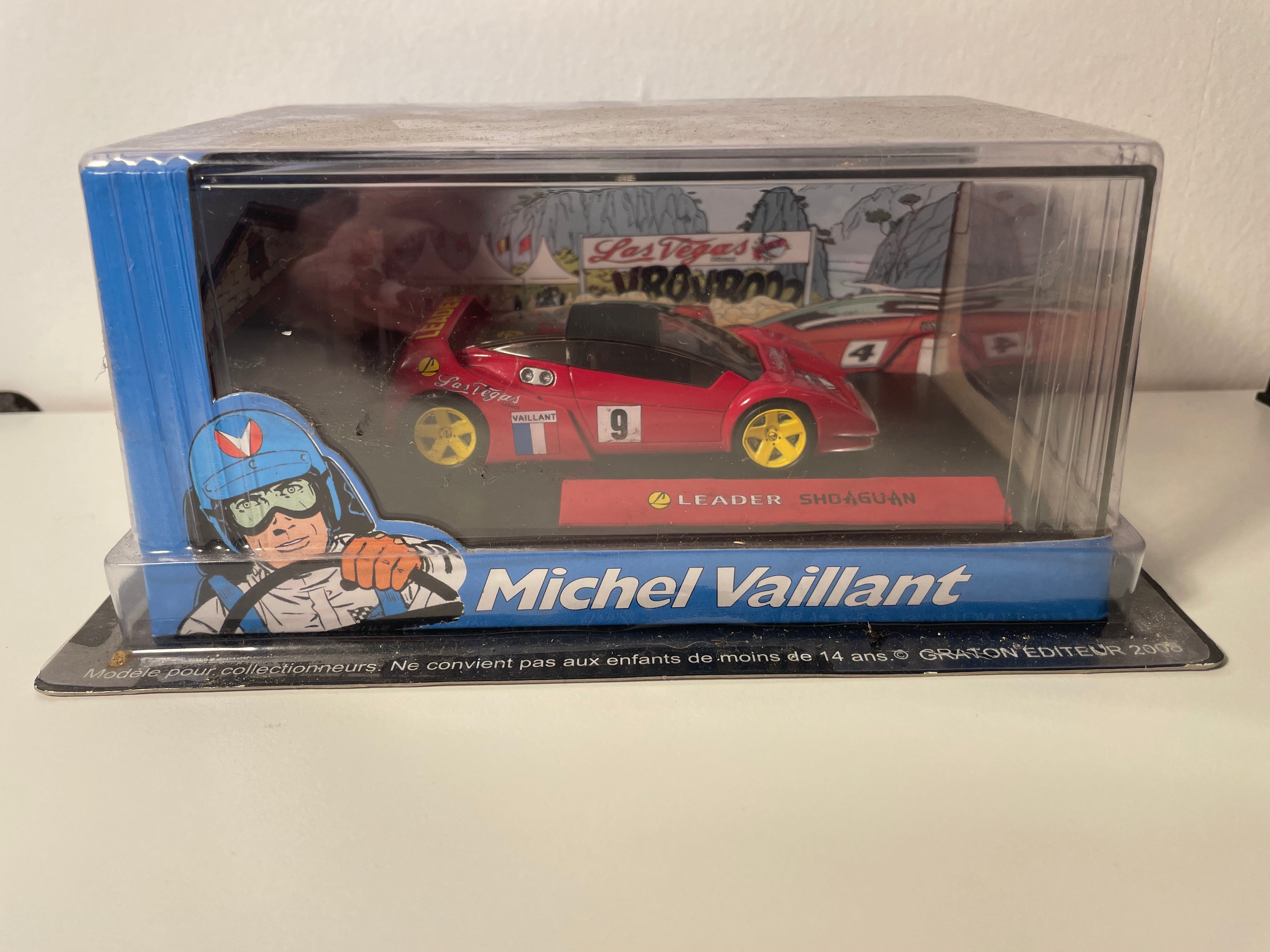 Cette Leader Shoaguan numéro 9 trouve naturellement sa place parmi les voitures miniatures de la collection Michel Vaillant, aux côtés d'autres véhicules emblématiques de la série. Elle s'harmonise parfaitement avec les miniatures d'auto de course, créant un ensemble cohérent dédié à l'univers de la compétition automobile.