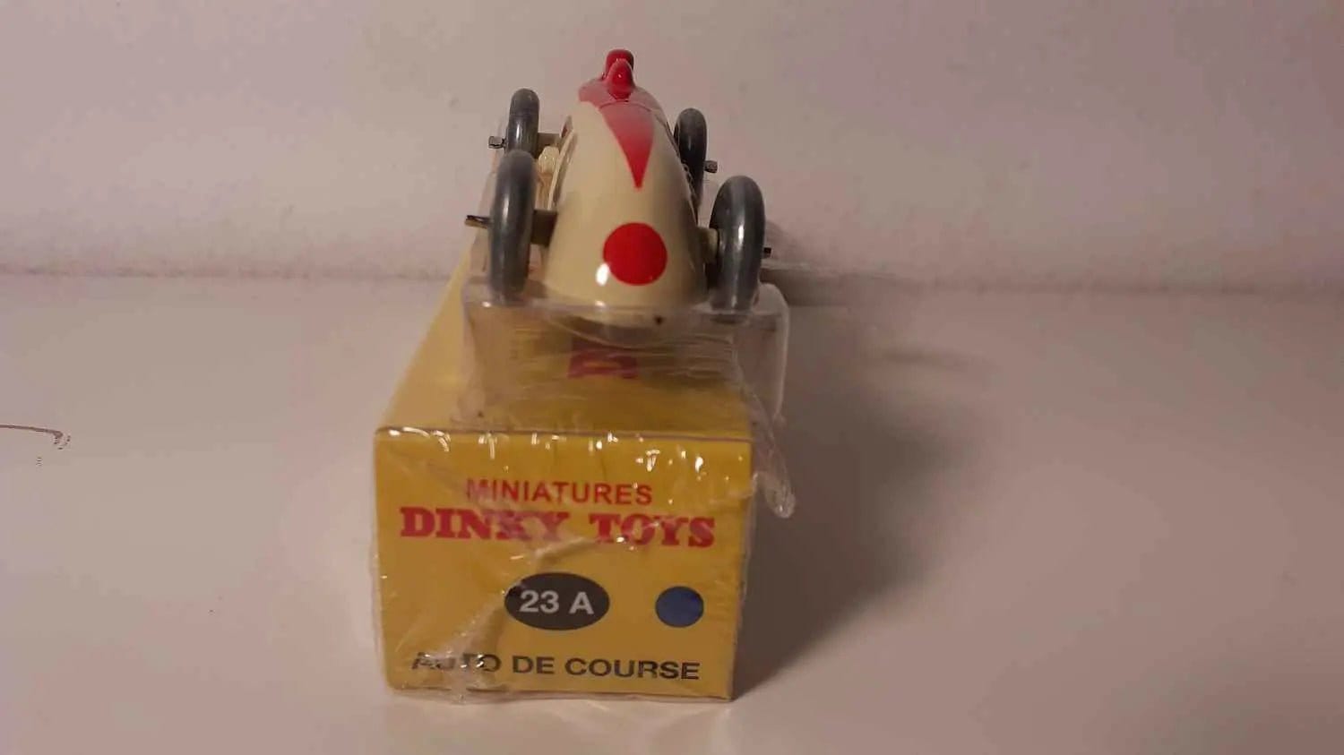 Fundada em 1934 pela empresa britânica Meccano, a Dinky-Toys revolucionou o mundo dos brinquedos ao oferecer reproduções fiéis de veículos reais. Nas décadas de 1950 e 1960, provavelmente o período em que este modelo de carro de corrida foi criado, a marca estava no auge da sua criatividade. Os circuitos de corridas eram uma paixão das massas, e a Dinky-Toys captou esse entusiasmo ao oferecer miniaturas de corridas especialmente elaboradas.