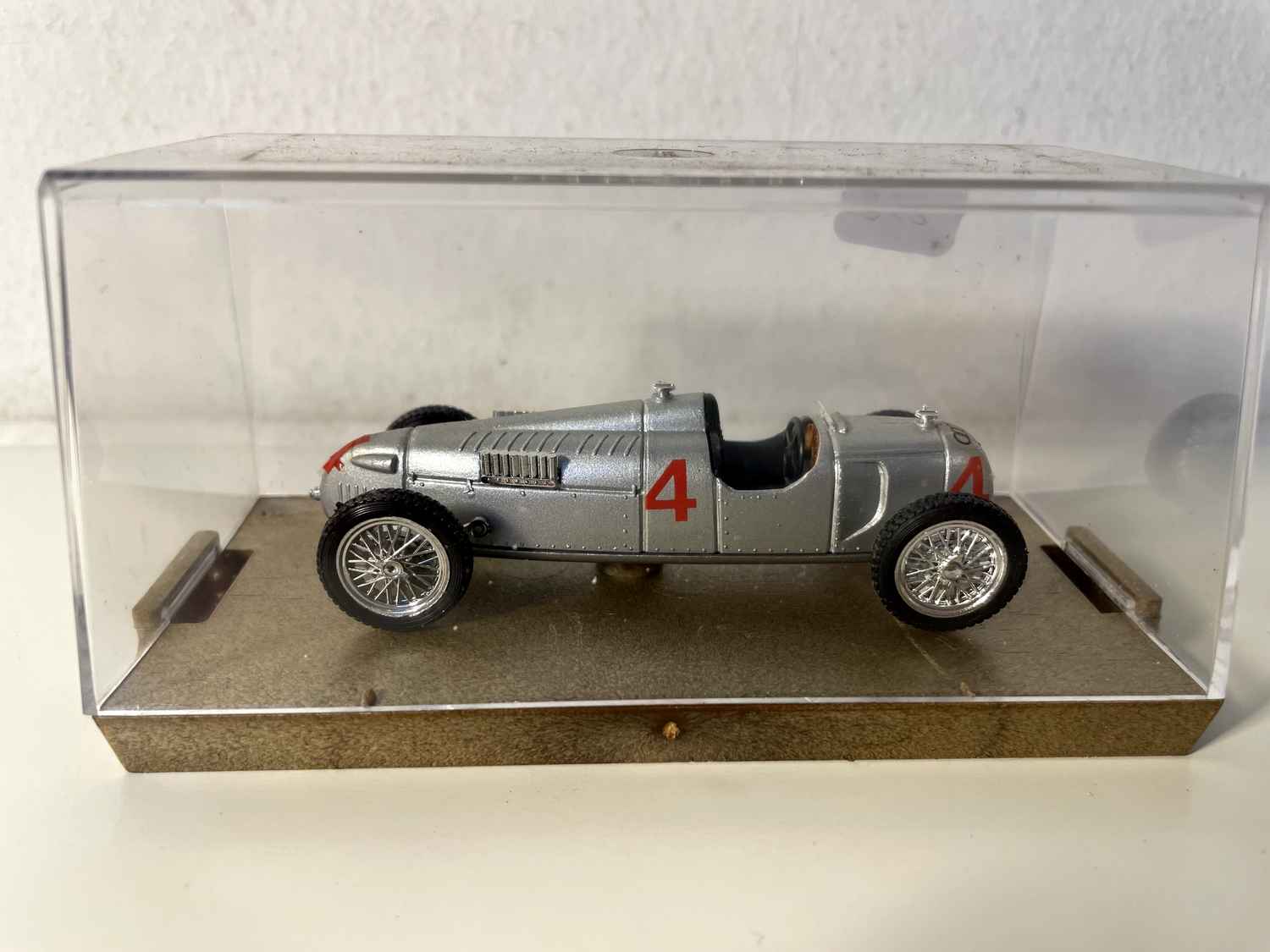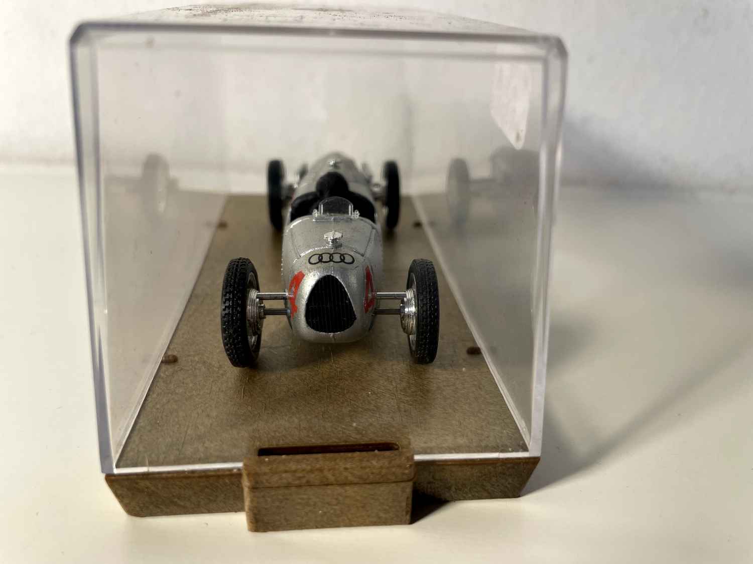 Este Auto Union Type C encontra naturalmente o seu lugar ao lado de outras miniaturas da década de 1930 , um período áureo da inovação automóvel. Harmoniza-se na perfeição com os restantes representantes desta era revolucionária, nomeadamente os carros de competição Mercedes-Benz , os seus principais rivais nas pistas.