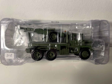 Este camião de recuperação militar Berliet GBC em miniatura representa um dos veículos utilitários mais emblemáticos do exército francês nas décadas de 1950 e 1960. Reproduzido em detalhes minuciosos com a sua característica pintura verde caqui, este item de colecção capta perfeitamente o espírito robusto e funcional deste camião de recuperação que marcou a história dos automóveis militares franceses.