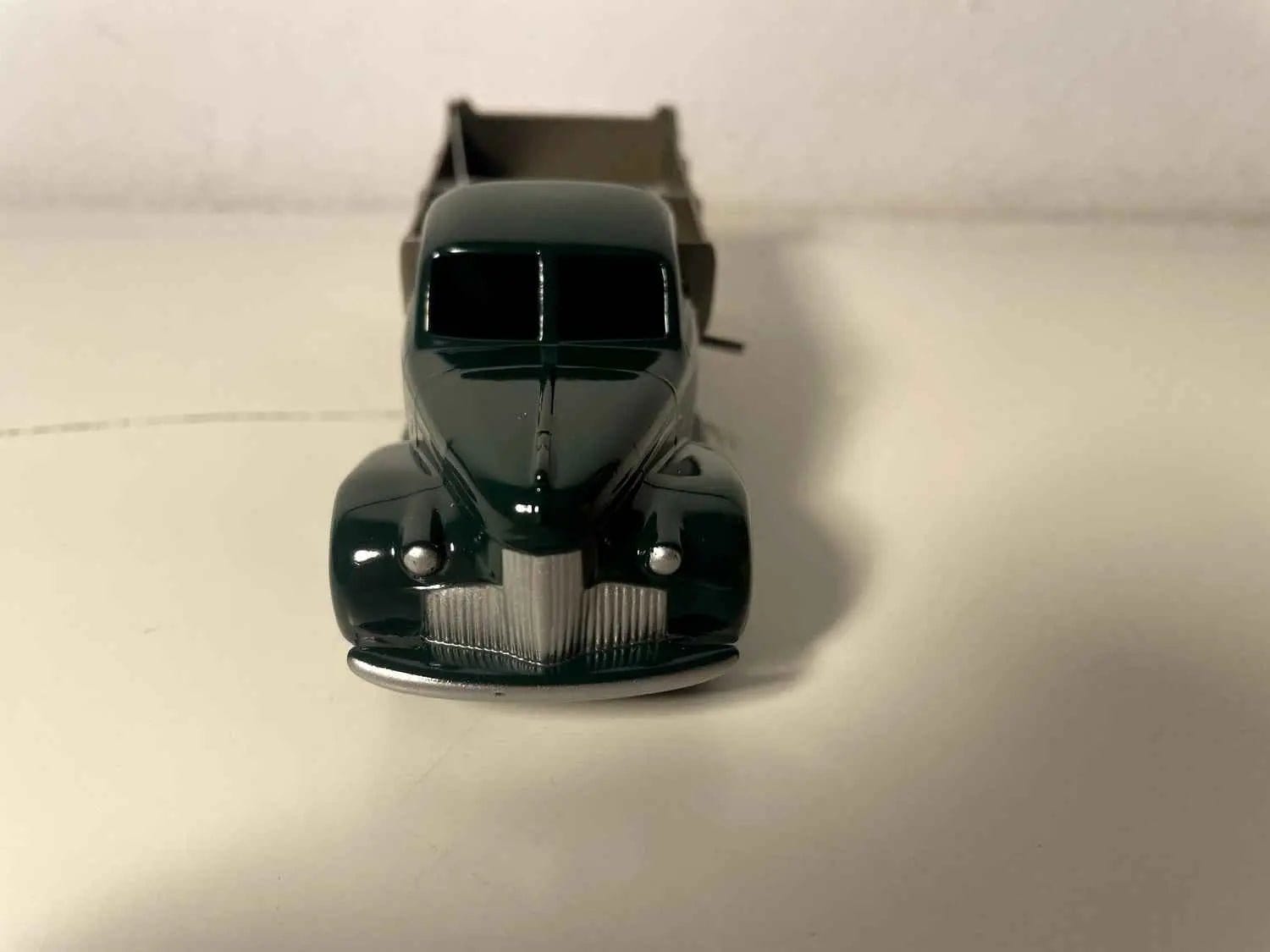 Esta magnífica reprodução da reedição Atlas da Dinky-Toys do camião basculante Studebaker verde leva-nos de volta à era dourada dos veículos utilitários americanos. Esta fiel miniatura capta na perfeição a essência robusta e funcional destes veículos de trabalho que marcaram a história industrial de meados do século XX.