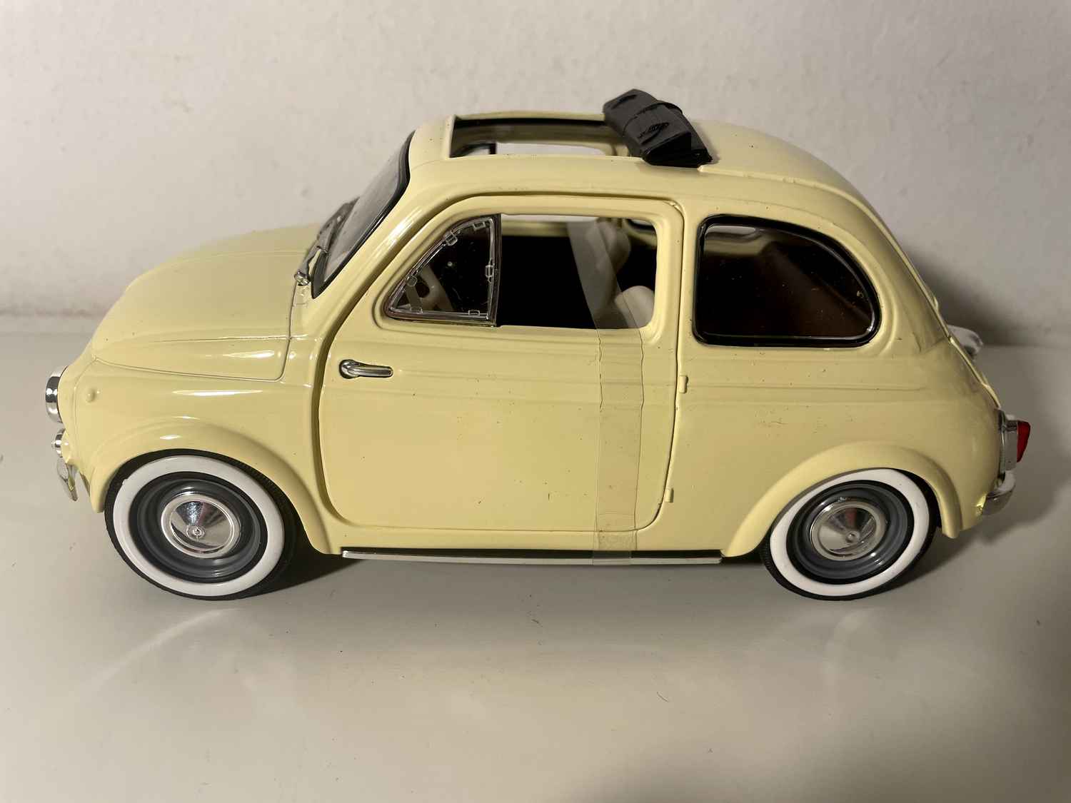 Carros em miniatura Fiat 500 amarelo/creme? (Solido escala 1/18)