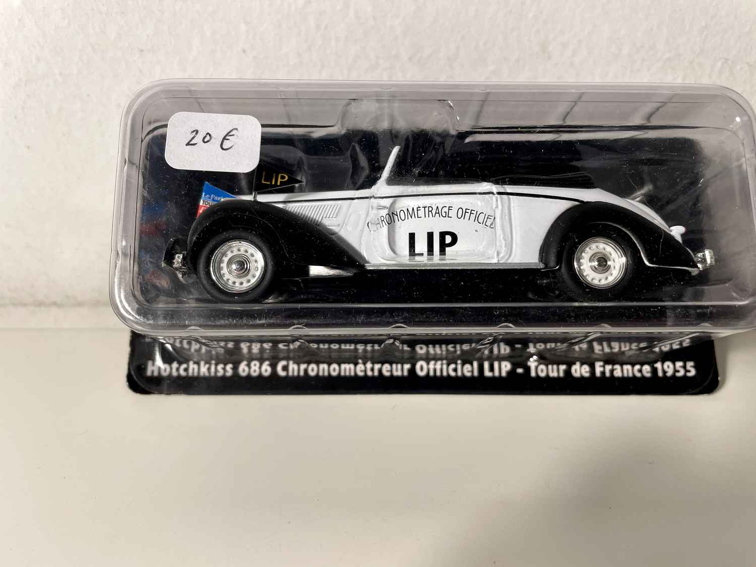 Carros em miniatura Hotchkiss 686 branco e preto "Cronometrista oficial da LIP" Tour de France 1955