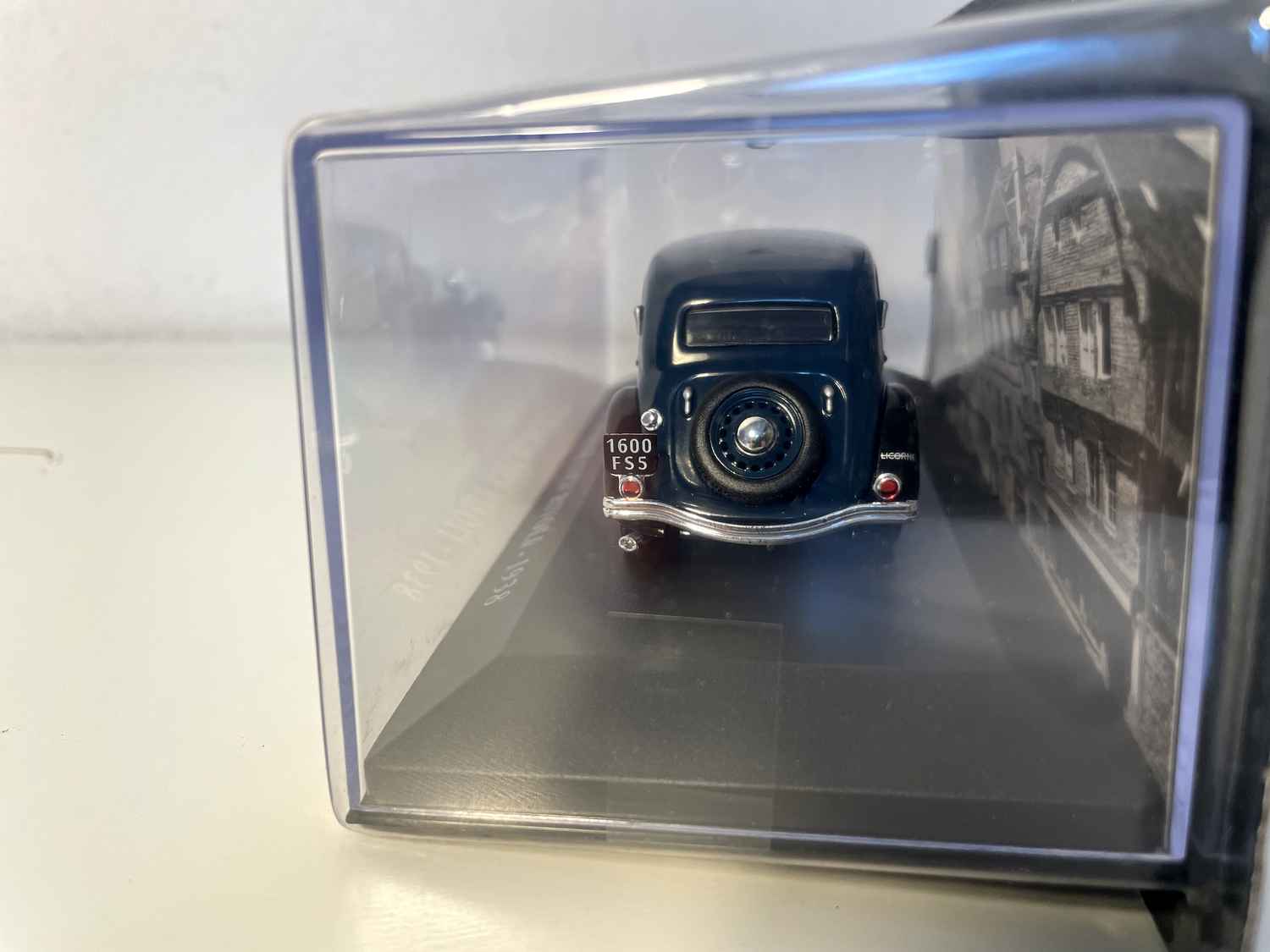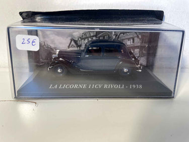 Descubra esta magnífica miniatura azul-escura de um Licorne 11CV Rivoli de 1938 , uma reprodução fiel de um icónico automóvel francês do período entre guerras. Este artigo de coleção capta toda a elegância e refinamento deste prestigiado sedan que personificou o know-how automóvel francês na década de 1930.