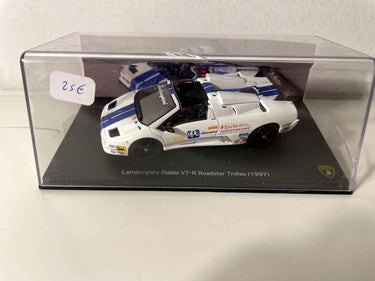 Carros em miniatura Lamborghini Diablo VT-R Roadster Troféo Azul e Branco de 1997