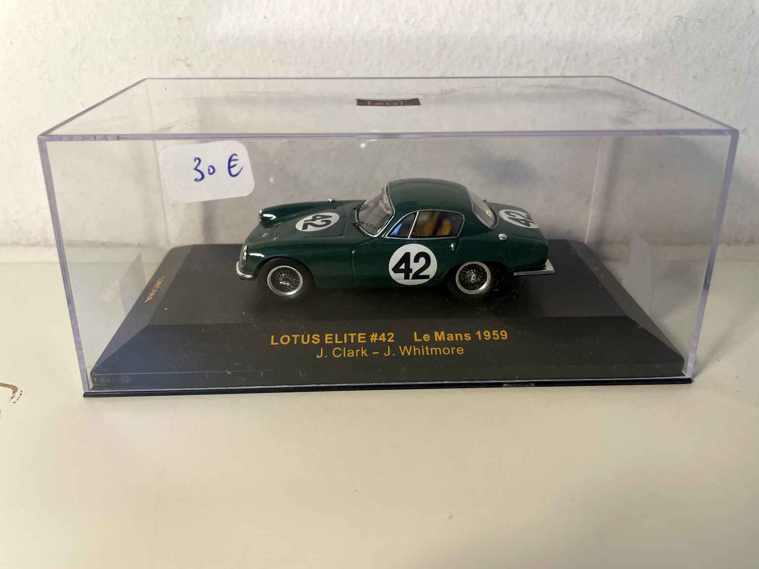 Carros em miniatura Lotus Elite verde número 42 - 24 horas de Le Mans de 1959 - IXO