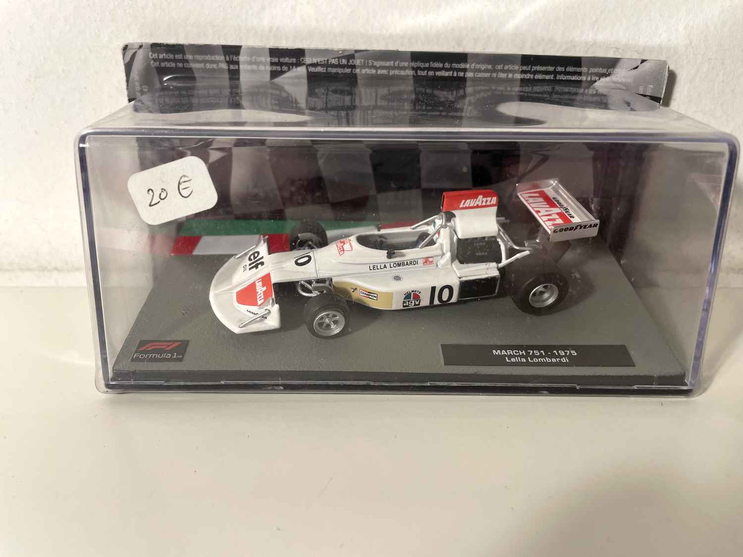 Este March 751 número 10 branco de 1975 representa um dos momentos mais significativos da história da Fórmula 1. Esta miniatura à escala 1/43 presta homenagem ao monolugar pilotado por Lella Lombardi , a primeira e única piloto mulher a pontuar na Fórmula 1.