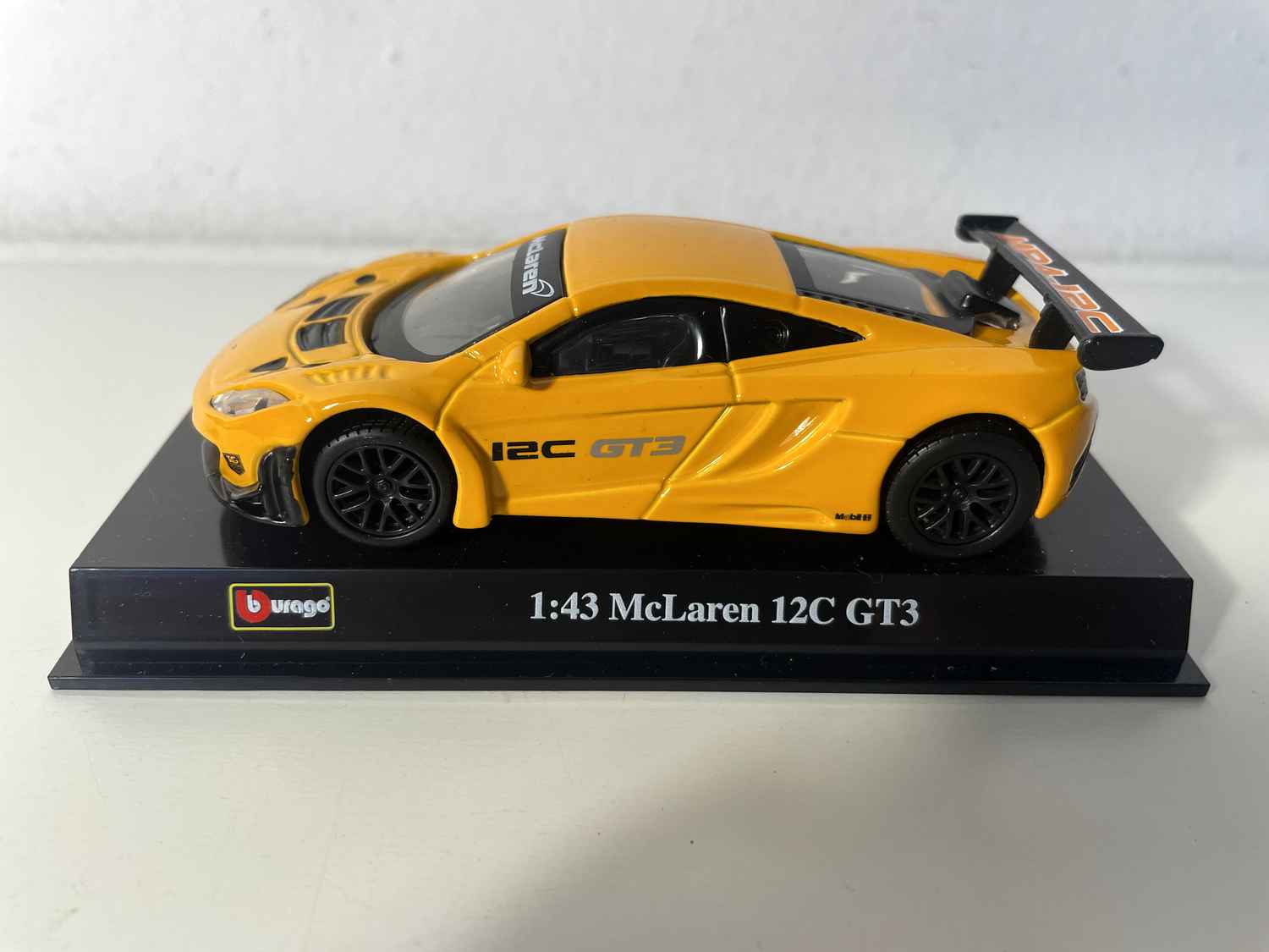 A McLaren 12C GT3 laranja da Burago representa uma das criações mais refinadas da marca britânica em sua versão de pista. Esta miniatura McLaren capta perfeitamente a essência dessa temível GT3, projetada para dominar os circuitos internacionais. Sua pintura laranja vibrante faz homenagem à cor icônica da McLaren, tornando esta reprodução um verdadeiro objeto de paixão para colecionadores.