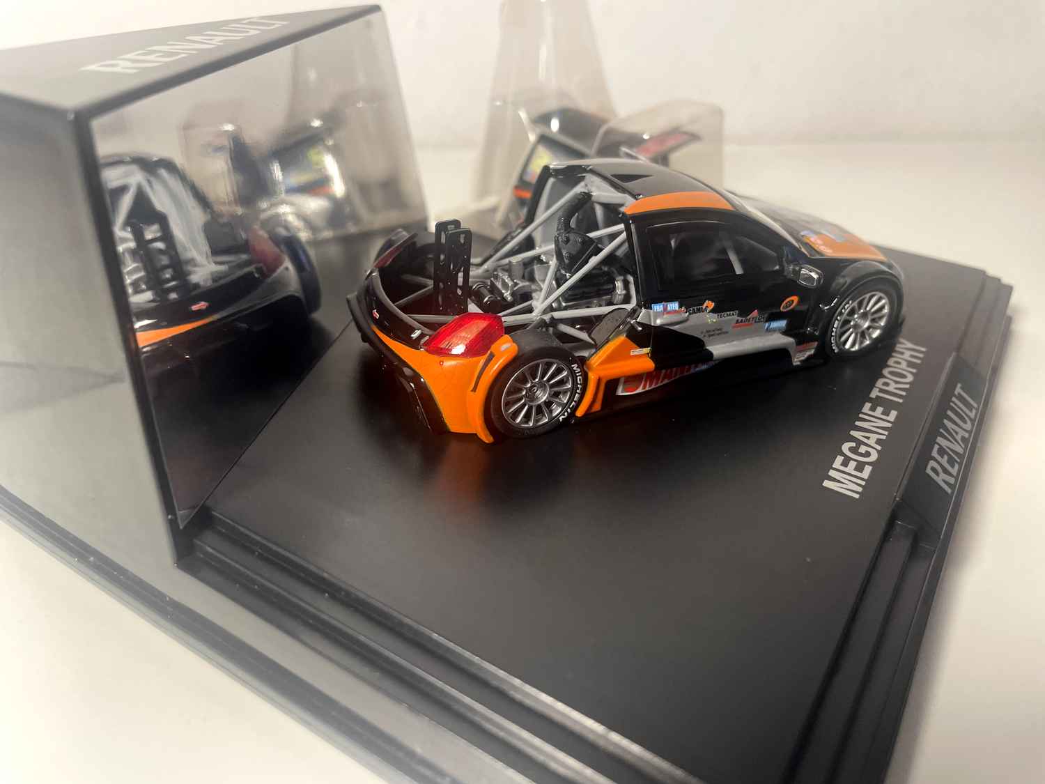 O Mégane Trophy da Norev captura a essência pura de uma das experiências de corrida de marca mais emocionantes da França. Este modelo em escala 1/43 reproduz fielmente as linhas agressivas e a pintura distinta preta, laranja e cinza desta temível máquina de corrida, símbolo do desempenho da Renault Sport.