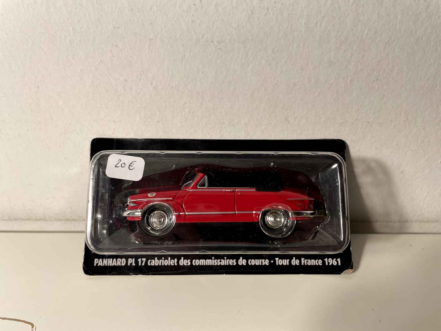 Descubra esta magnífica miniatura do Panhard PL 17 cabriolet vermelho, uma reprodução fiél do veículo dos comissários de corrida do Tour de France de 1961. Este peça excepcional captura perfeitamente o espírito dessa época dourada do ciclismo francês, onde os carros de apoio eram uma parte fundamental do espetáculo esportivo.