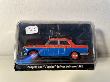 Carros em miniatura Peugeot 404 "L'Equipe" vermelho e azul do Tour de France de 1962