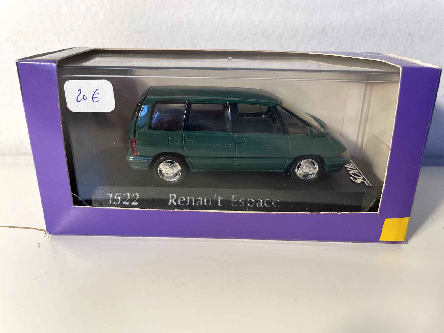 Carros em miniatura Renault Espace Verde (Referência Solido 1522) com caixa de papelão roxa