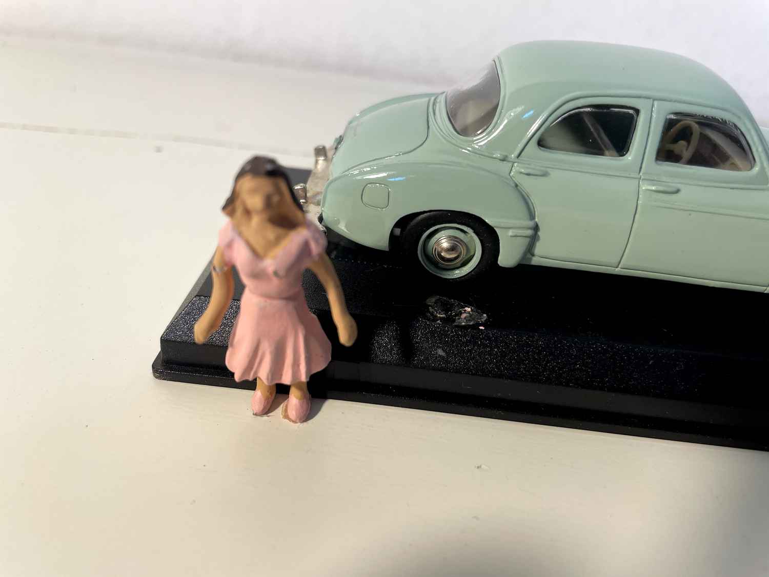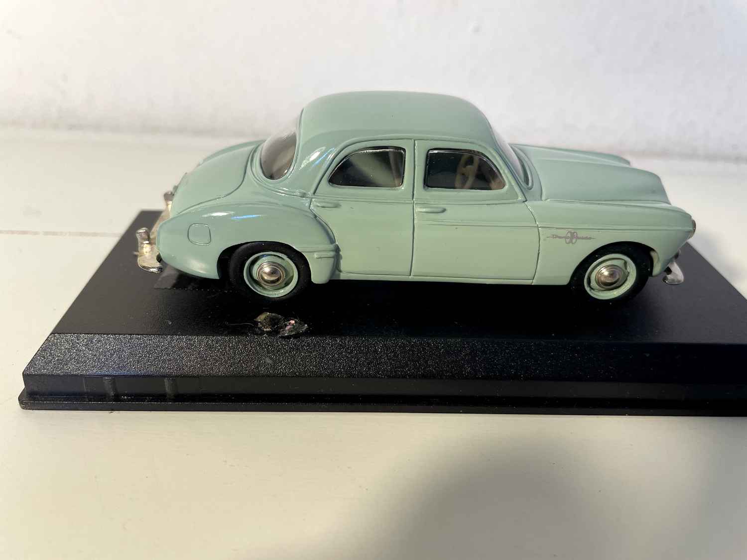Esta miniatura verde-claro de 1958 capta na perfeição esta era em que a Renault ousou desafiar as convenções e oferecer automóveis ousados e refinados .