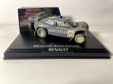 Aqui está uma miniatura excepcional Renault Mégane Schlesser que captura o espírito aventureiro do rally-raid. Esta reprodução fiel em escala 1/43 celebra um dos capítulos mais gloriosos da Renault em competição off-road, incorporado pela lendária equipe Schlesser.
