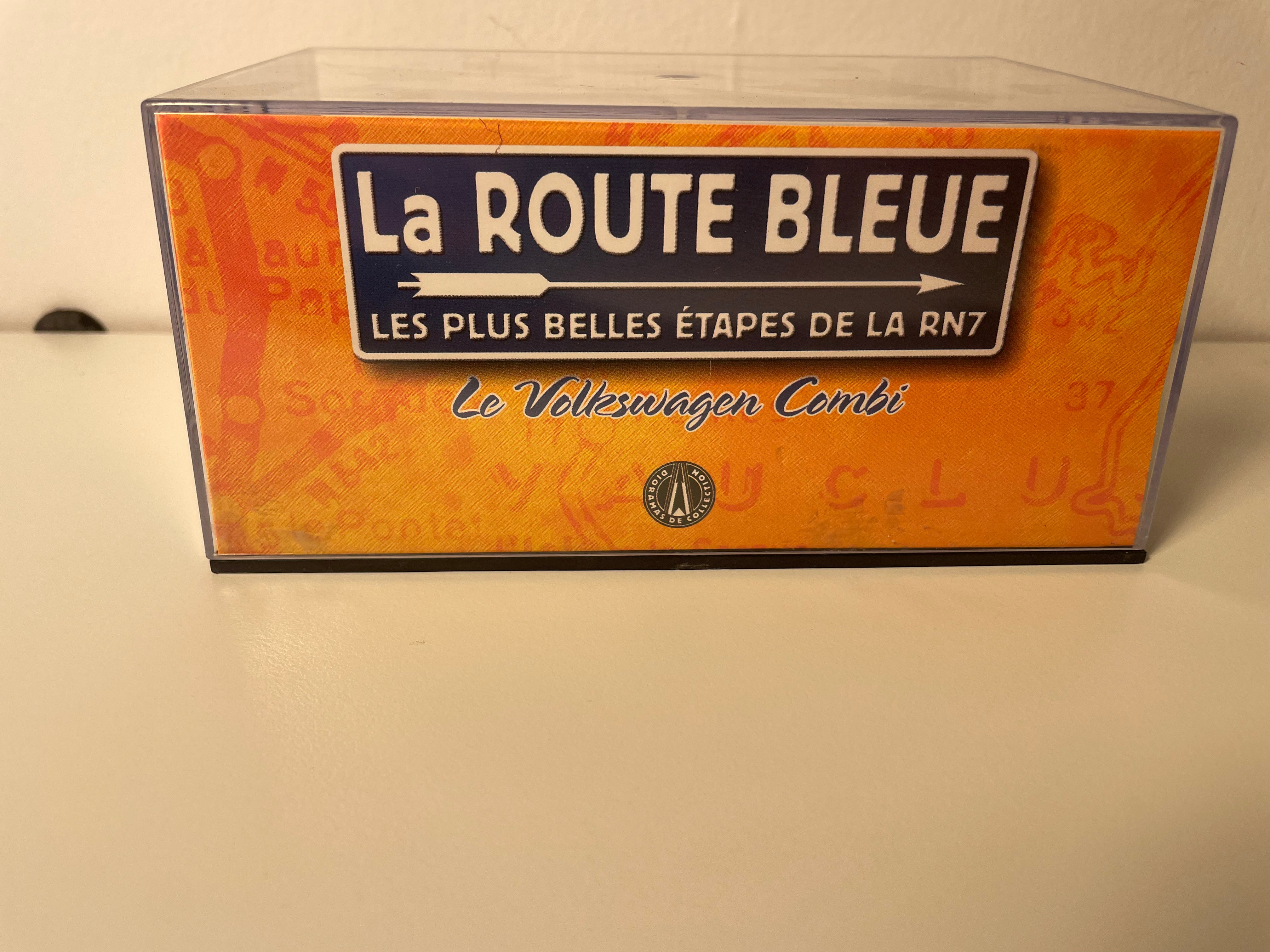 Découvrez cette magnifique miniature du Volkswagen Combi orange et toit blanc, édition spéciale "La Nationale 7 - la route bleue". Cette reproduction fidèle capture parfaitement l'esprit des vacances à la française des années 1960-70, quand le mythique van allemand sillonnait les routes de l'Hexagone chargé de rêves d'évasion.