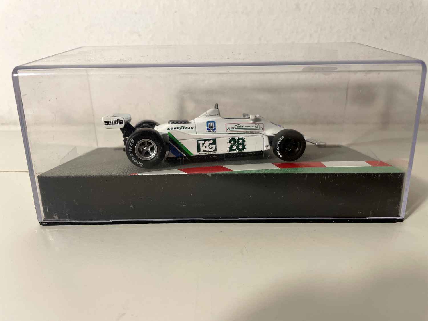 Carros em miniatura Williams FW07 branco número 28 de 1979 (Fórmula 1)